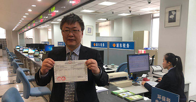 全國首張環(huán)境保護(hù)稅稅票今天上午在上海開出